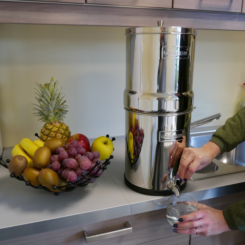 Le LONGEFILTRE Maxinox transforme simplement l’eau du robinet en une eau pure, saine et savoureuse, sans branchement ni électricité.